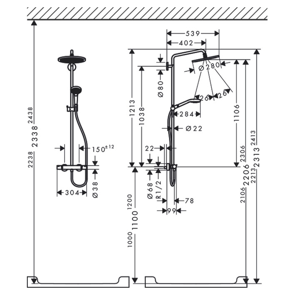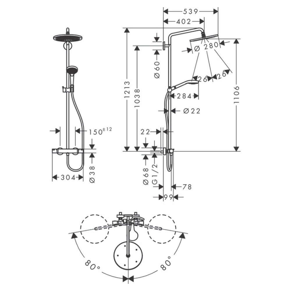 Верхний душ, ручной душ, термостат для душа, штанга для душа, держатель для душа, душевая штанга