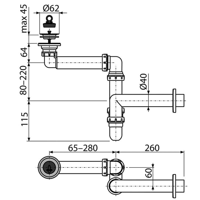 /A413 Сифон для умывальника экономящий пространство D 63 ALCAPLAST