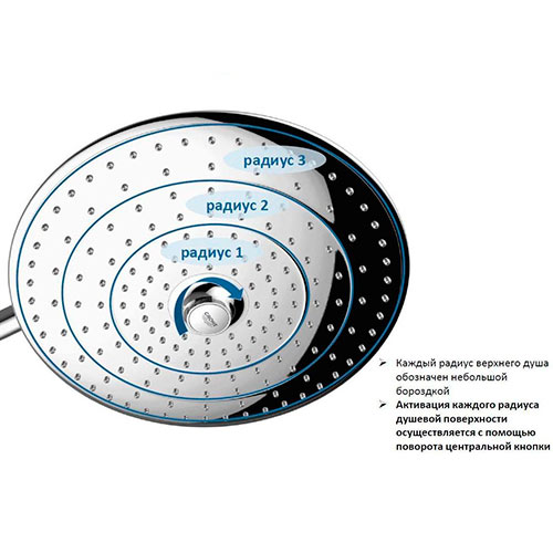 Верхний душ; Ручной душ; Штанга; Кронштейн; Шланг; Набор креплений