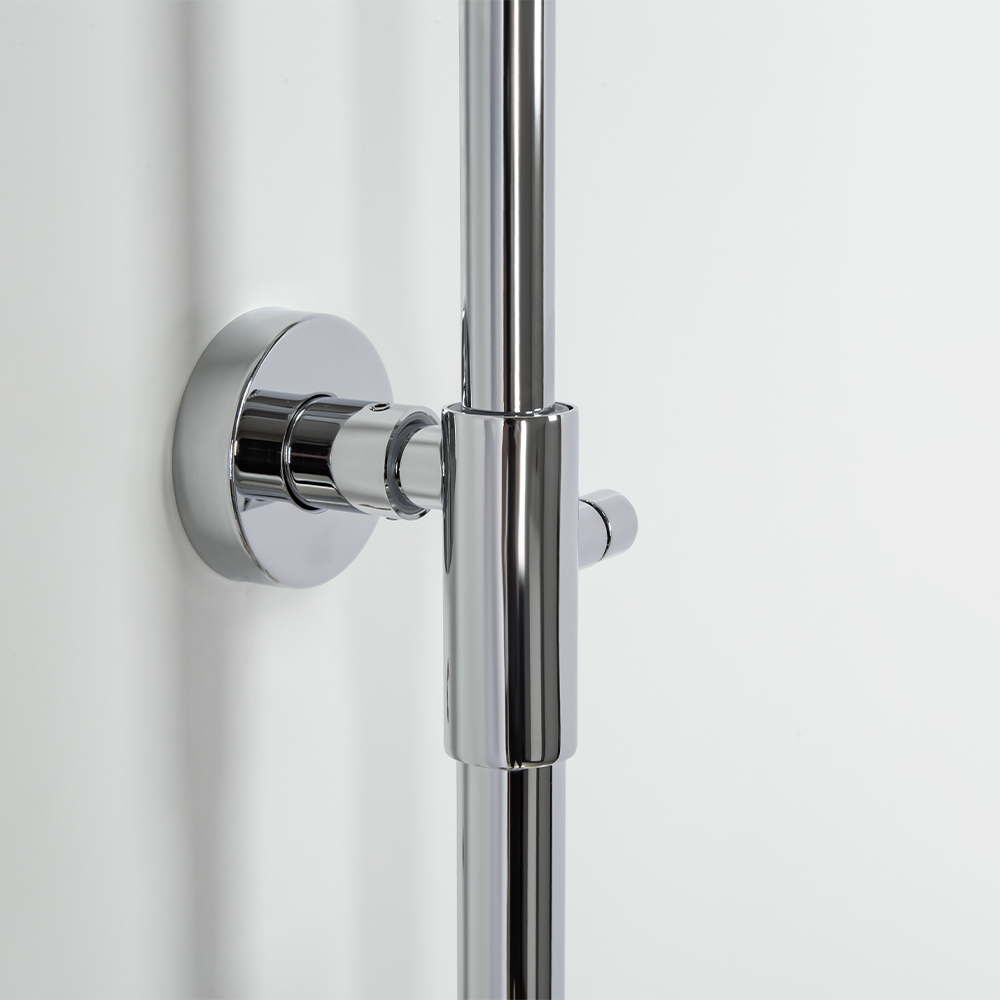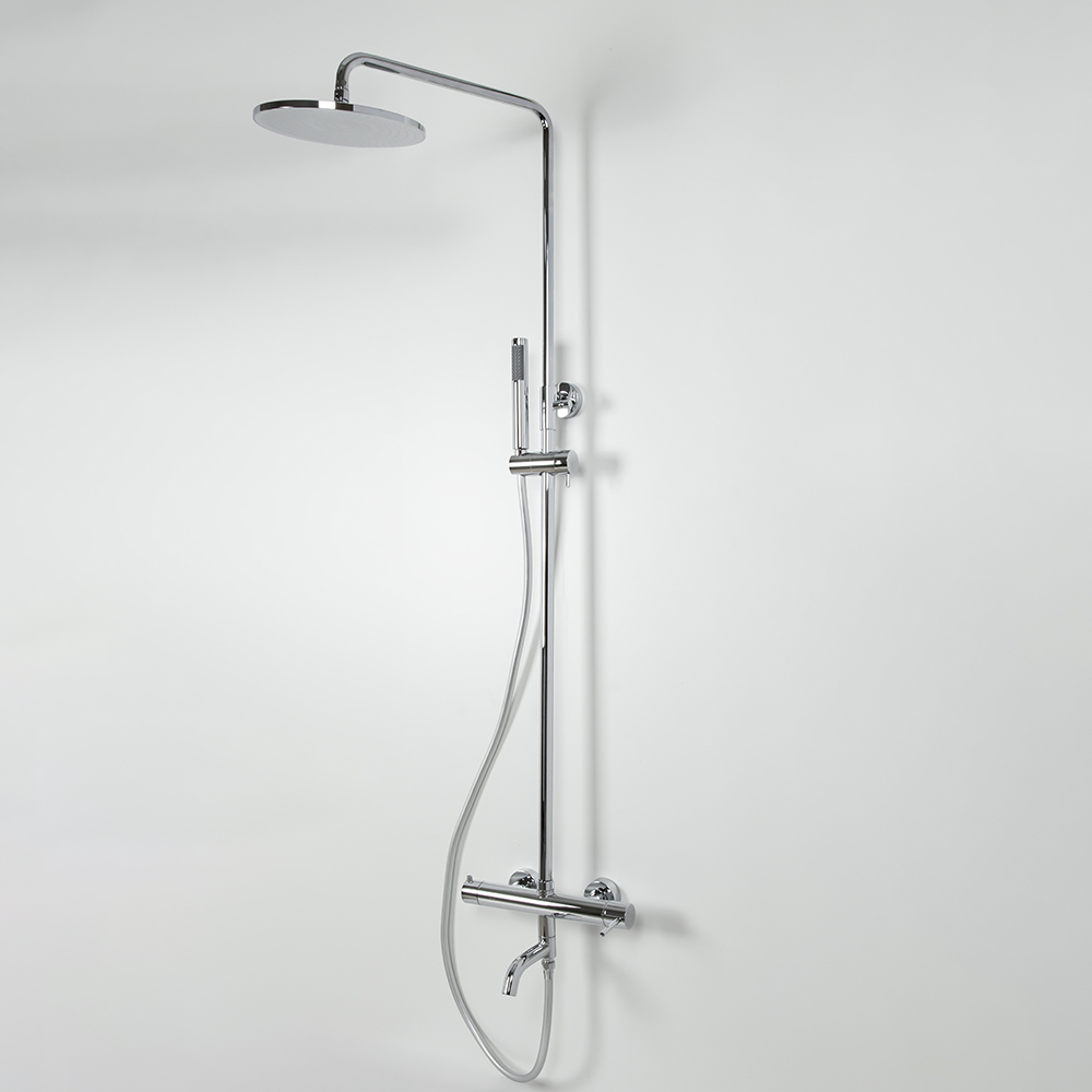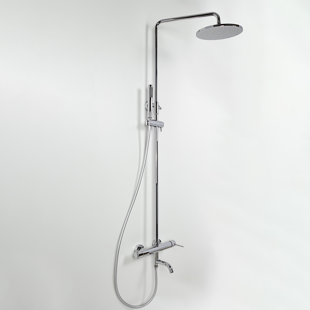 душевая стойка; комплект эксцентриков; смеситель; верхний душ; душевой шланг; ручной душ; инструкция.
