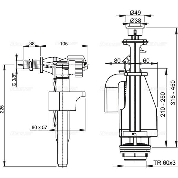 /Арматура для унитаза 3/8 двойной смыв Alcaplast SA08