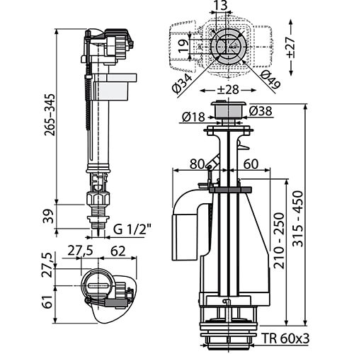 Арматура для унитаза 1/2 двойной смыв кнопка Alcaplast SA08S