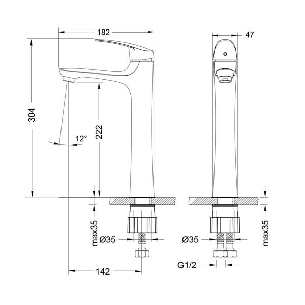 Смеситель;комплект креплений;комплект гибкой подводки;инструкция.