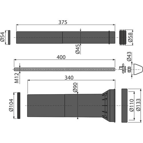 Удлинительный комплект для инсталляций Alcaplast M9000