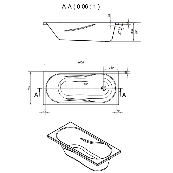 /Акриловая ванна Mito Red 160x75 белая, без ножек