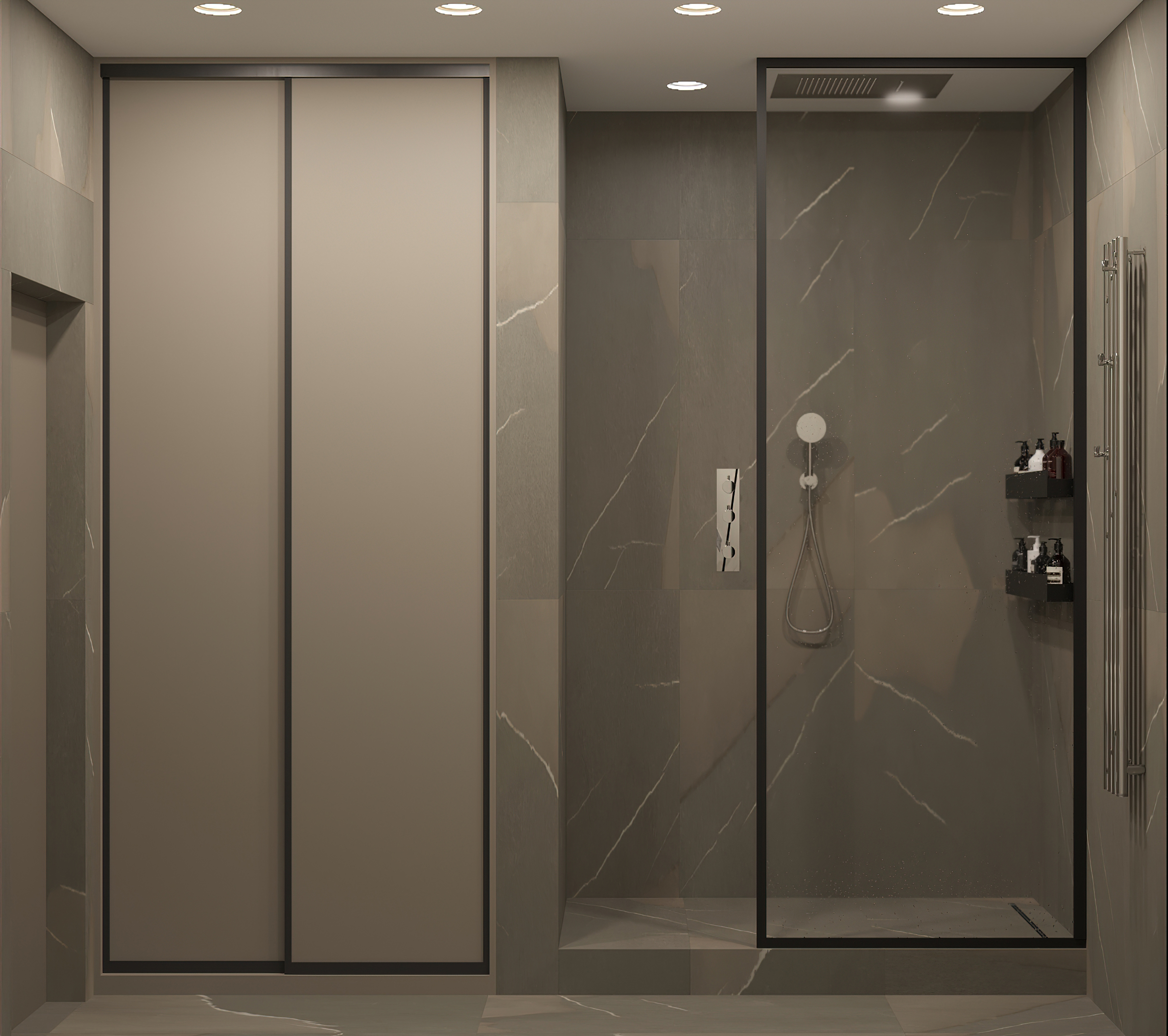 • Душевые двери в нишу
