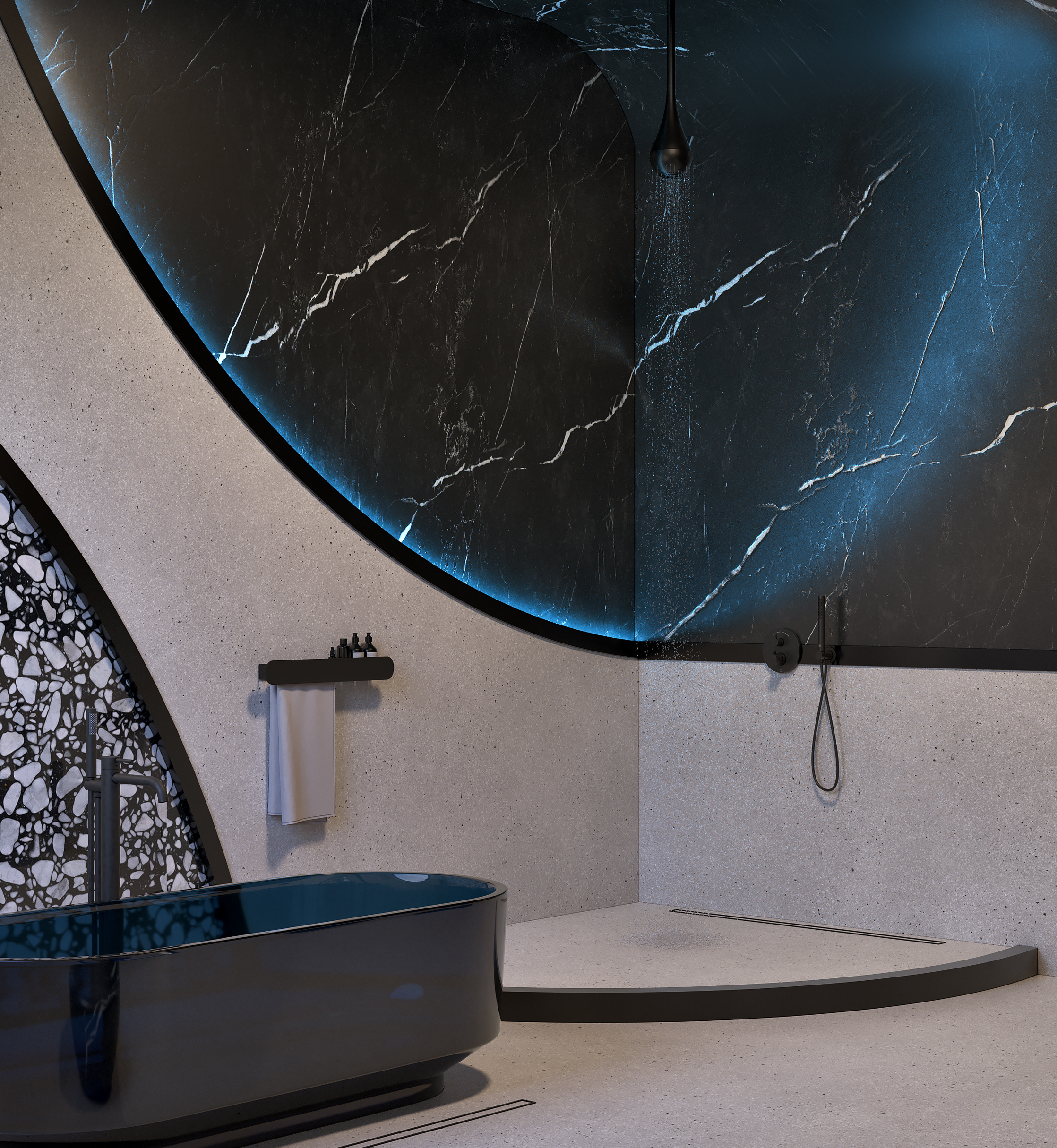 Основными задачами в проектировании ванной комнаты являются функциональность, практичность и эстетика. В процессе создания дизайна удалось соблюсти все основы и гармонично сочетать их между собой. В такой ванной комнате можно легко отключиться от внешнего мира и погрузиться в особую атмосферу.